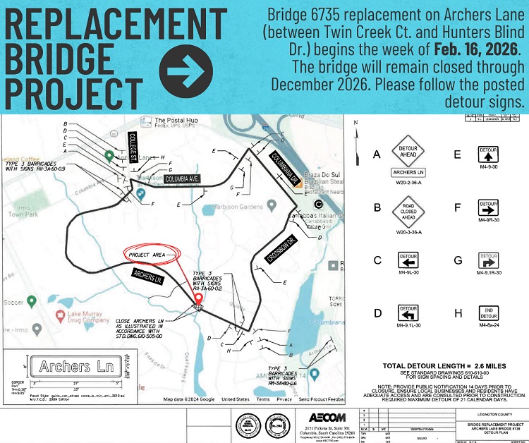 Lexington County has awarded the Archers Lane Bridge Replacement project to AOS Specialty Contractors, Inc. The project includes the replacement of two bridges along Archers Lane. Construction is nearing completion with the anticipated reopening of Bridge 6734, located between Treeslope Court and Shadetree Court, during the week of February 9.Continue Reading